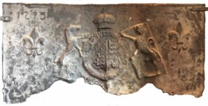 The addition of dates to firebacks normally indicates when they were cast. Two firebacks with these Elizabethan arms, each of a different size and proportions, carry a date of 1579 in a style untypical of the late-Tudor period. In both instances the armorials are very worn, suggesting long continuous use. The condition of the date in both instances, however, is relatively fresh, suggesting that the dates may have been added later.
